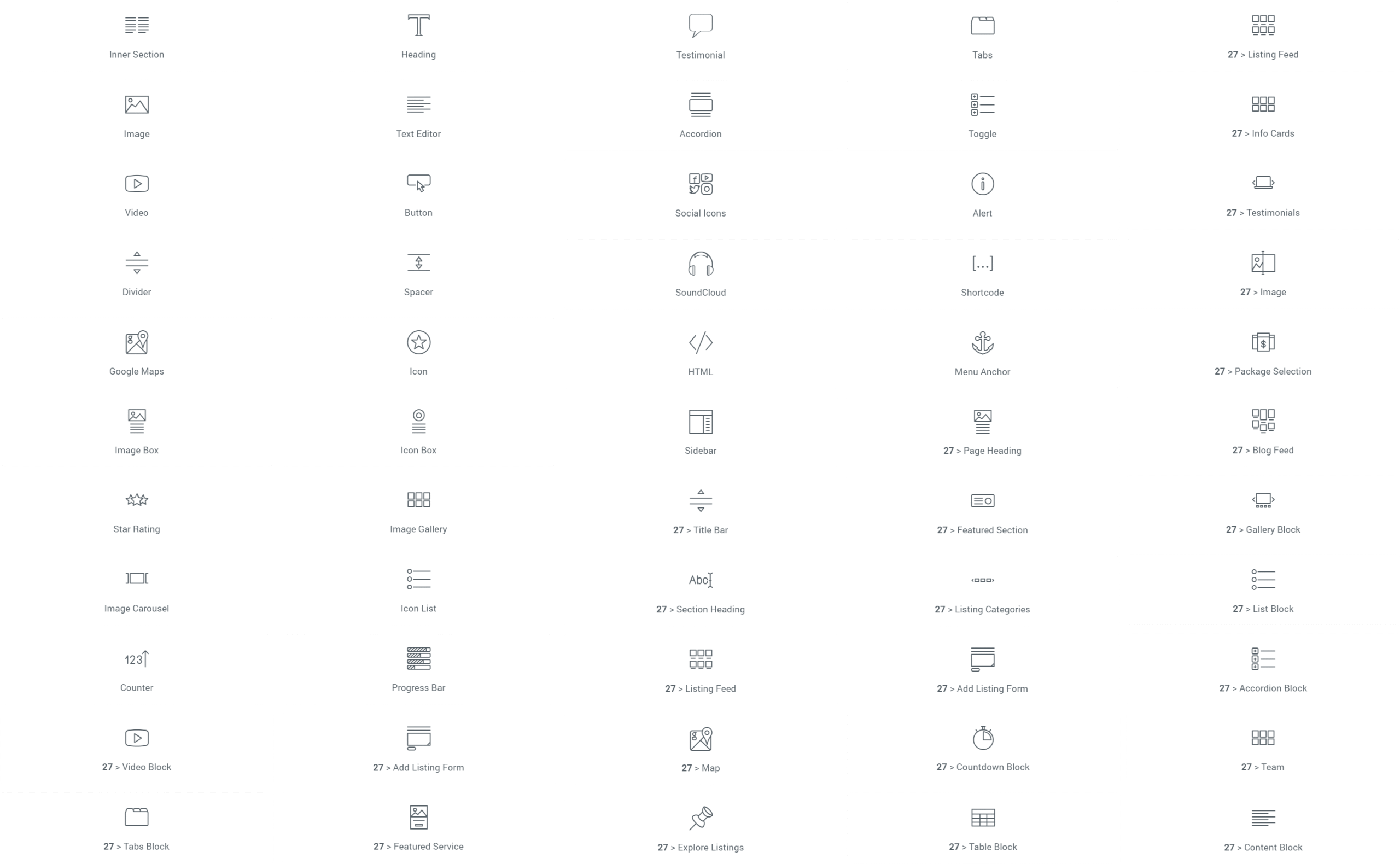 Elementor widgets 50+ Elements available to design pages out of the box. Add more using elementor plugins and addons